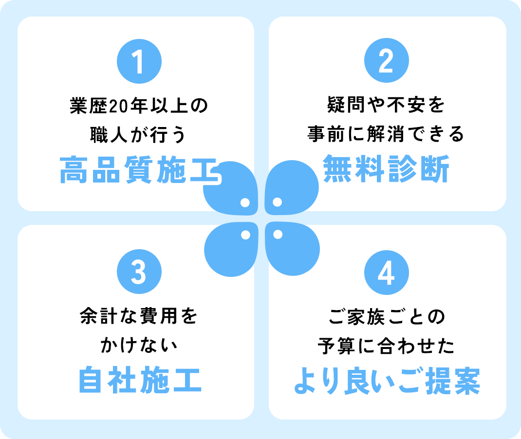 経験豊富な職人が直接施工し、無料診断や丁寧な提案で、「安心・納得できるリフォーム」を実現します。